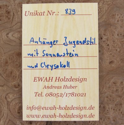 Anhänger Jugendstil mit Sonnenstein und Chrysokoll – Unikat Nr. 839