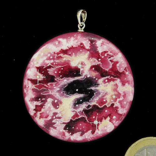 Amulett bemalt mit der Sternengeburt “Liebe” und mit 4 Kristallglassteinen besetzt.
