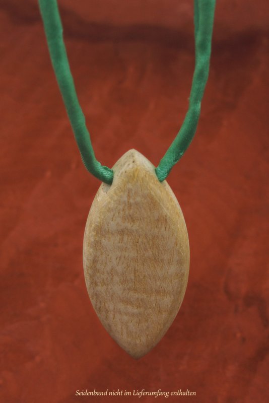 Ein sehr elegant wirkender Anhänger in Form einer Mandorla! Das Holz haben wir unbehandelt belassen. Somit können Sie den Anhänger als Duftschmuck verwenden, indem Sie entsprechende Duftöle auftragen. Nähere Informationen finden Sie in unserem Blog-Beitrag zum Thema Duftschmuck. Selbstverständlich können Sie die Mandorla auch nach Ihren eigenen Wünschen mit Holzöl, Bienenwachs oder anderen Mitteln behandeln. Nur wird der Anhänger dann nur noch schlecht als Duftschmuck dienen können, weil das Duftöl nicht mehr in das versiegelte Holz eindringen kann.