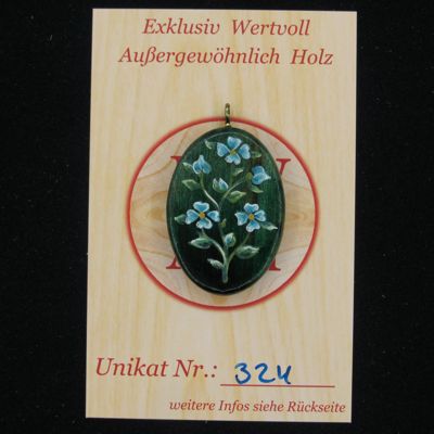Trachtenanhänger oval, grün mit Vergißmeinnicht – Unikat Nr. 324